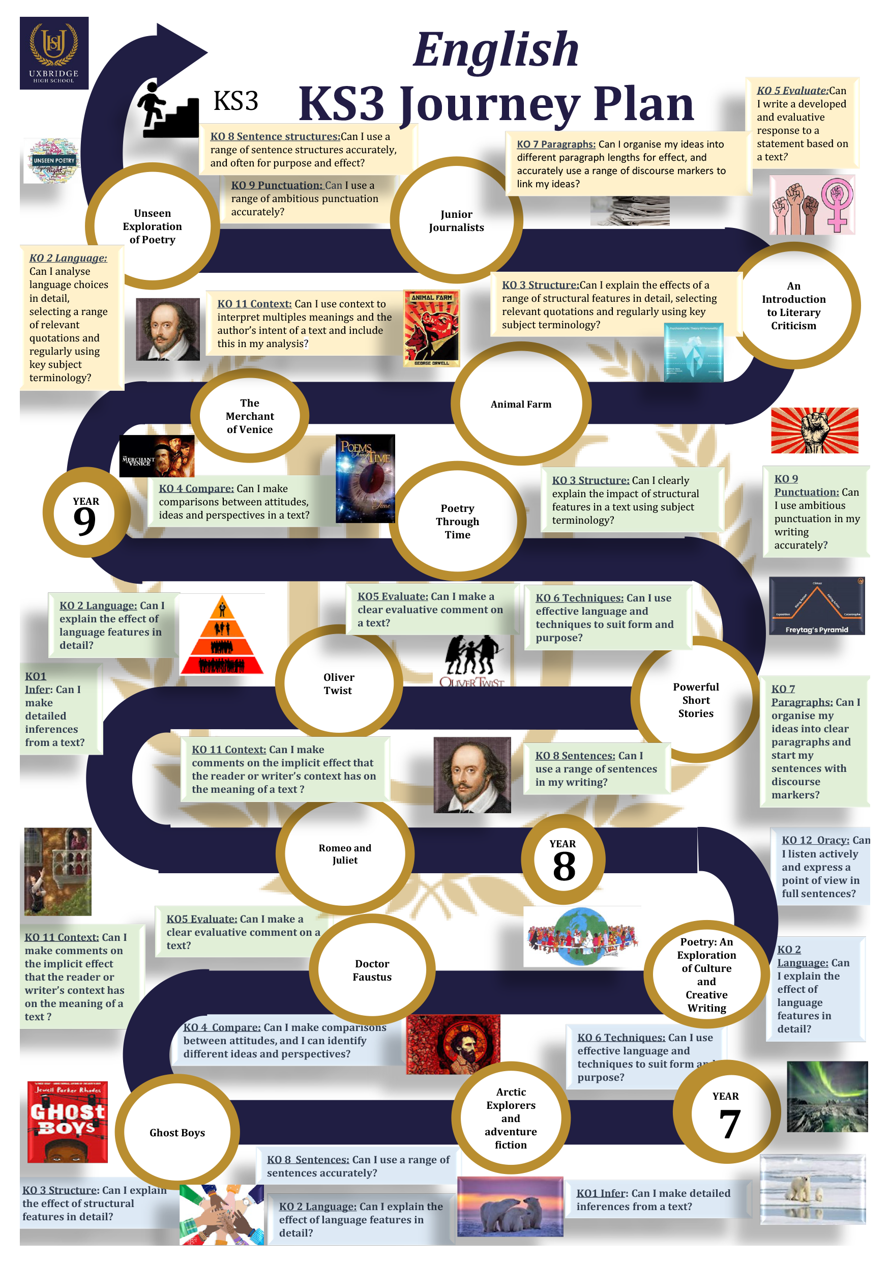 We ensure that our KS3 curriculum provides a strong foundation for GCSE Study at KS4. This involves embedding rigorous texts that stretch and challenge our pupils whilst exposing them to key knowledge and skills that underscore their later study.