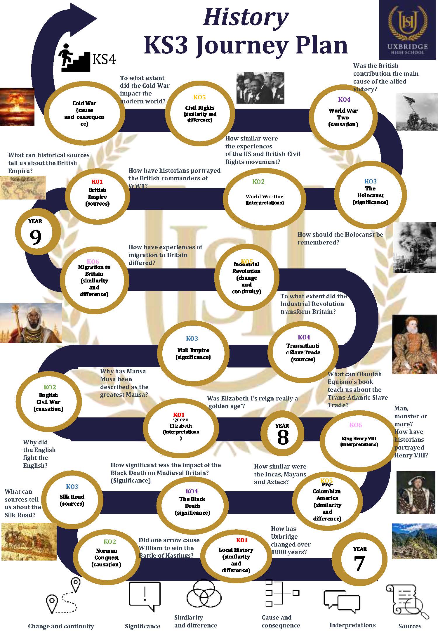 The UHS History curriculum encompasses over a thousand years of history, both British and across the world. Students begin their journey in 1066 and work all the way to the present day. Historians key stage 3 & 4 are challenged to develop the skills of change, causation and source analysis. Building on this, our curriculum is designed to develop understanding of concepts such as respect, diversity and crucially injustice. It is essential for giving students a voice.