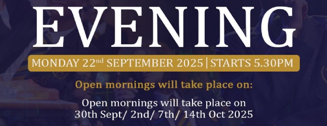 We are excited to invite prospective students and their families to our Open Evening on Monday 22nd September 2025, starting at 5:30pm.