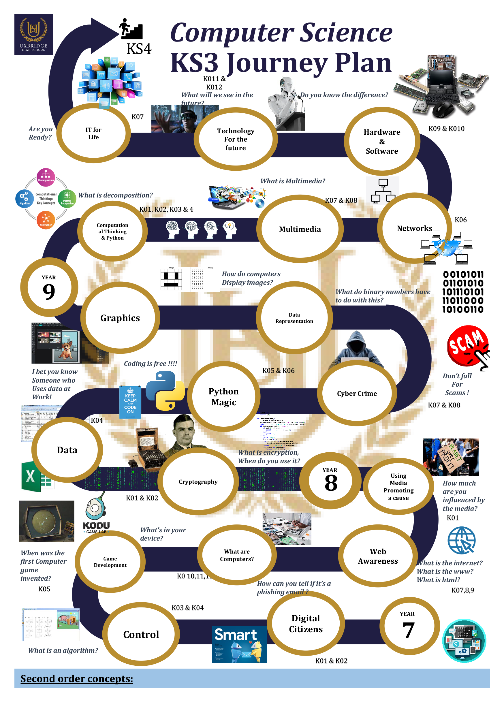 The computing curriculum encourages students to use computational thinking and creativity to understand and change the world. It has strong connections with mathematics, science, and design and technology, and offers insights into both natural and artificial systems. At its core is computer science, where students learn the principles of information and computation, how digital systems work, and how to apply this knowledge through programming. Alongside this, students develop information technology skills to create programs, systems, and digital content, and become digitally literate—able to communicate, express ideas, and participate fully in an increasingly digital world.