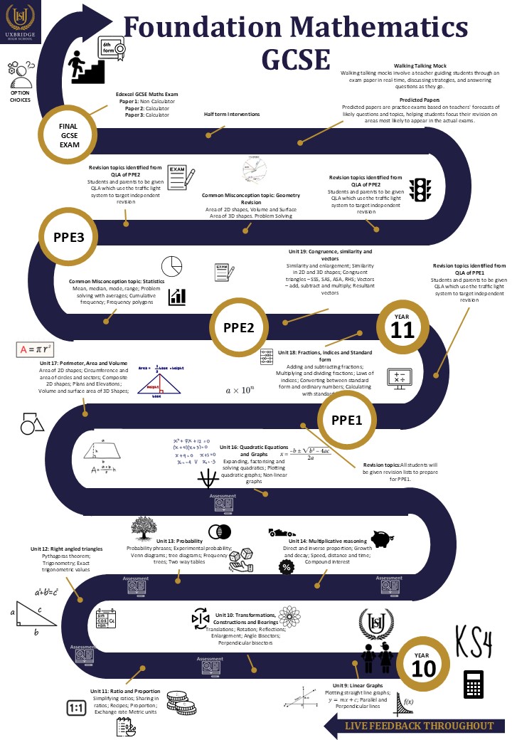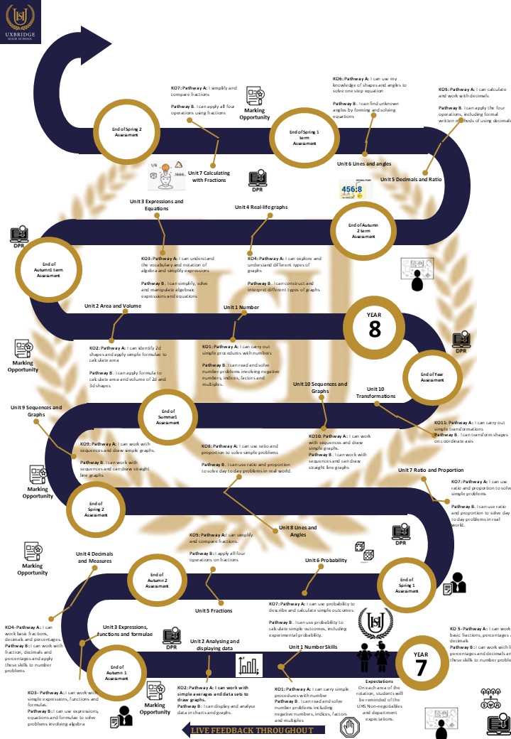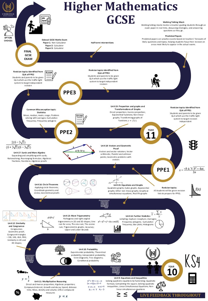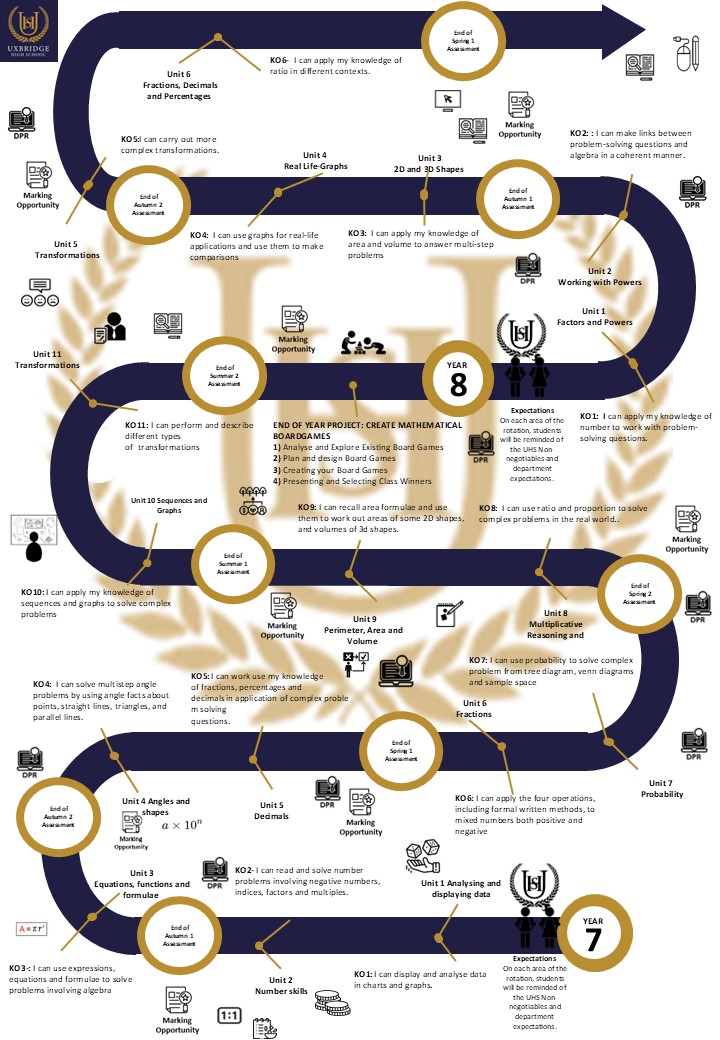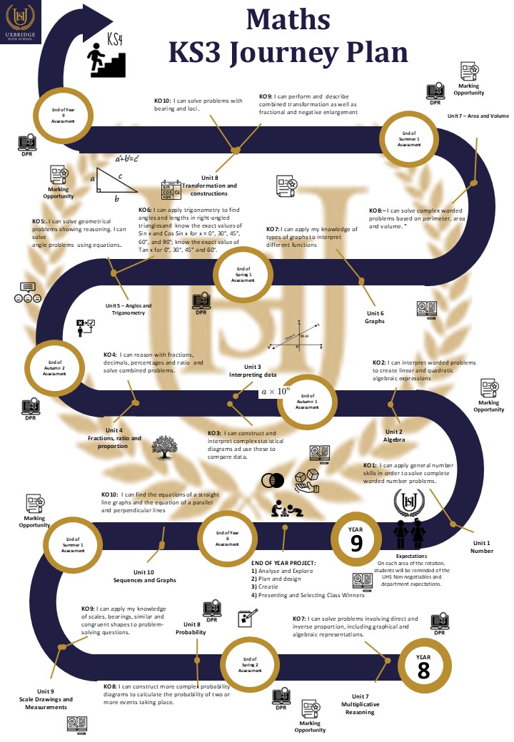 Mathematics at Uxbridge High School is designed to develop confident, independent thinkers who understand not just how maths works, but why it works. Across all key stages, we focus on developing students into confident, conceptual learners who can apply mathematical skills to solve real-world problems.